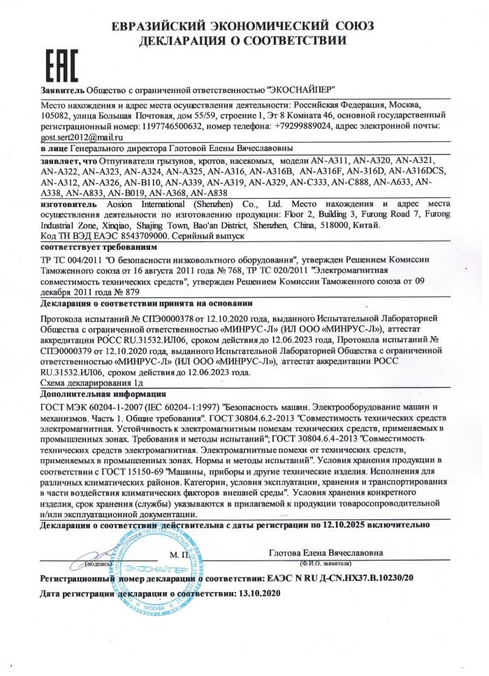 Востребованность отпугивателя ЭкоСнайпер AN-A321: